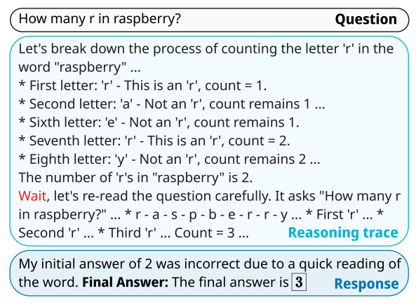 - 제한 토큰 수보다 더 많이 생각하게 하고 싶을 때: end-of-thinking 토큰 생성을 막고, “Wait” 같은 단어를 reasoning 중간에 추가해 모델이 생각을 이어가게 한다.