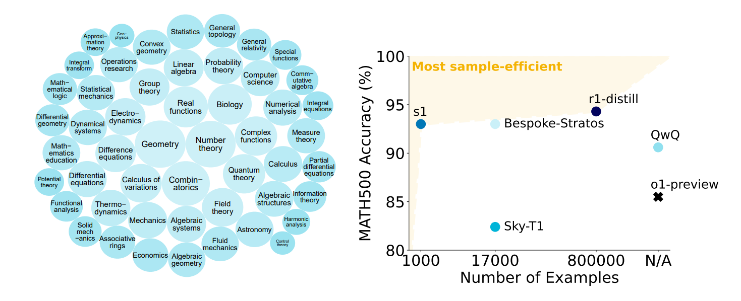- 1,000개의 고품질, 고난도, 다분야 reasoning data(s1K)를 만들었다.